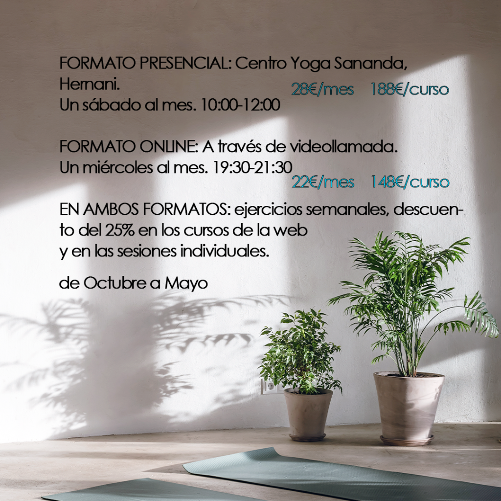 Con este curso podrás comenzar por fín una rutina saludable. Da igual si es en movimiento, en quietud, haciendo yoga, tai-chi o ganchillo… Te ayudo a tener una cita contigo a diario. Te acompaño durante 21 días a REconocer tus debilidades (excusas, situación, miedos…) y tener recursos y clases para así crear tu propia Sadhana-práctica…